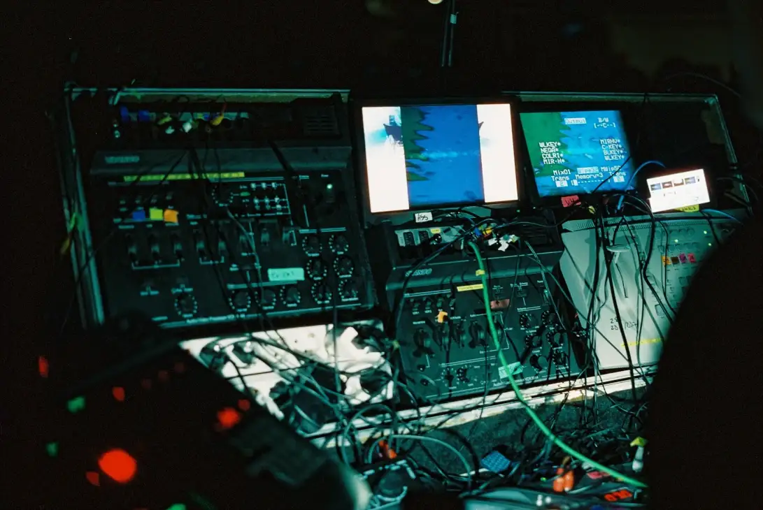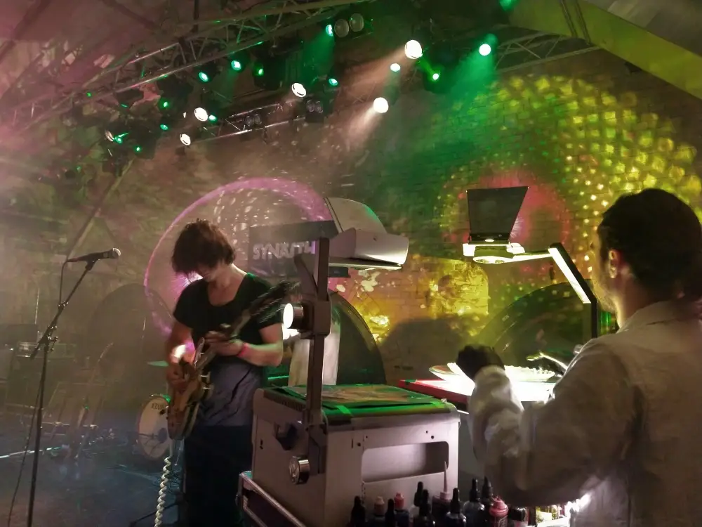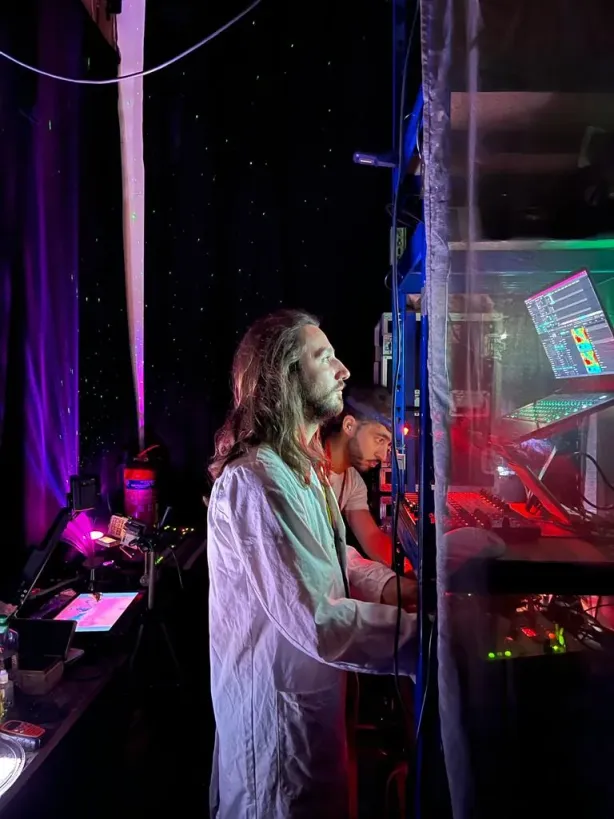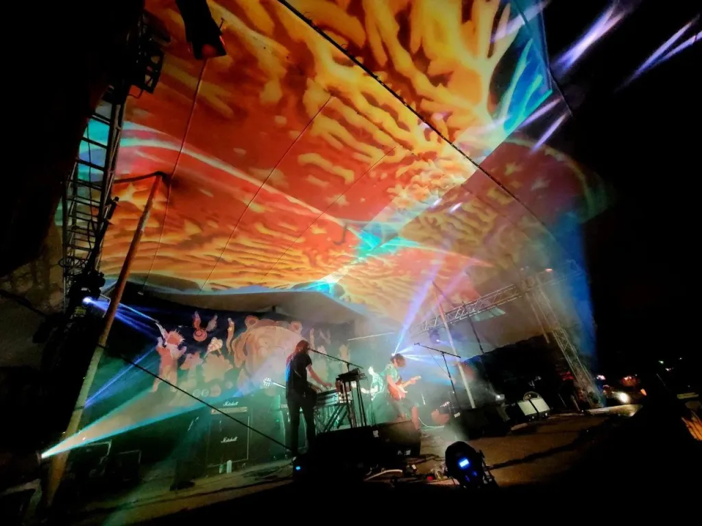 Working closely with a band allows us to co-develop a visual-musical language. Our goal is to create a fused synesthetic experience which captures the essence of live performances. Our visuals, in contrast with a rigid VJ set, mirror the dynamism and improvisation of the music itself: we design with adaptability and real-time responsiveness as a core value, so we can adapt to the mood of the moment, changes in the setlist, etc.